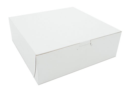 White Non-Window Bakery boxes are made of clay-coated kraft paperboard, which is white on the outside and brown on the inside. Each one piece box has an attached tuck-in lid, and can be used to hold and carry a variety baked goods. The lock corners facilitate assembly and enable the box to be folded flat for storage or transport. The clay-coated exterior can be custom printed with a logo or a business name. Paperboard is thicker and more rigid than paper and can be recycled or composted.