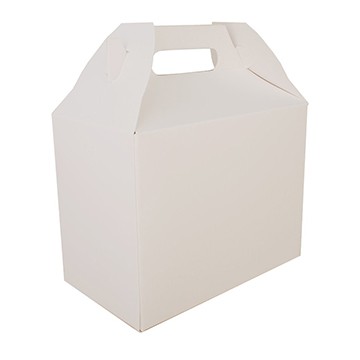 The Southern Champion 2709 Carry Out Barn Box, White is perfect for a large boxed lunch. The patented convertible locking feature on the handles allows the top of the box to fold flat for stacking and transport! Reassemble the top handles back into a barn box for an easy carry! Made from premium SBS paperboard, our barns are designed to keep food hot and fresh.