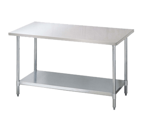 Work Table, 18"W x 30"D, 18/430 stainless steel flat top with turned down edges, adjustable galvanized undershelf, galvanized legs, adjustable ABS bullet feet, NSF