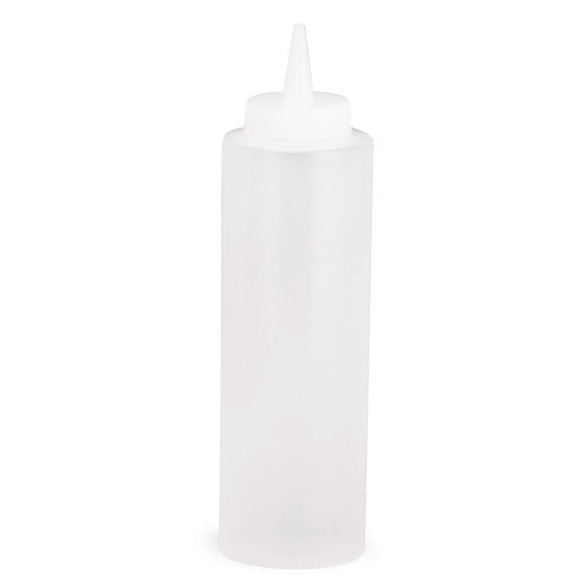 Tablecraft 112C 12 oz Natural Cone Tip Squeeze Dispenser is leakproof 'soft' polyethylene gives perfect 'flex' for fast prep. It is ideal for back of the house prep.